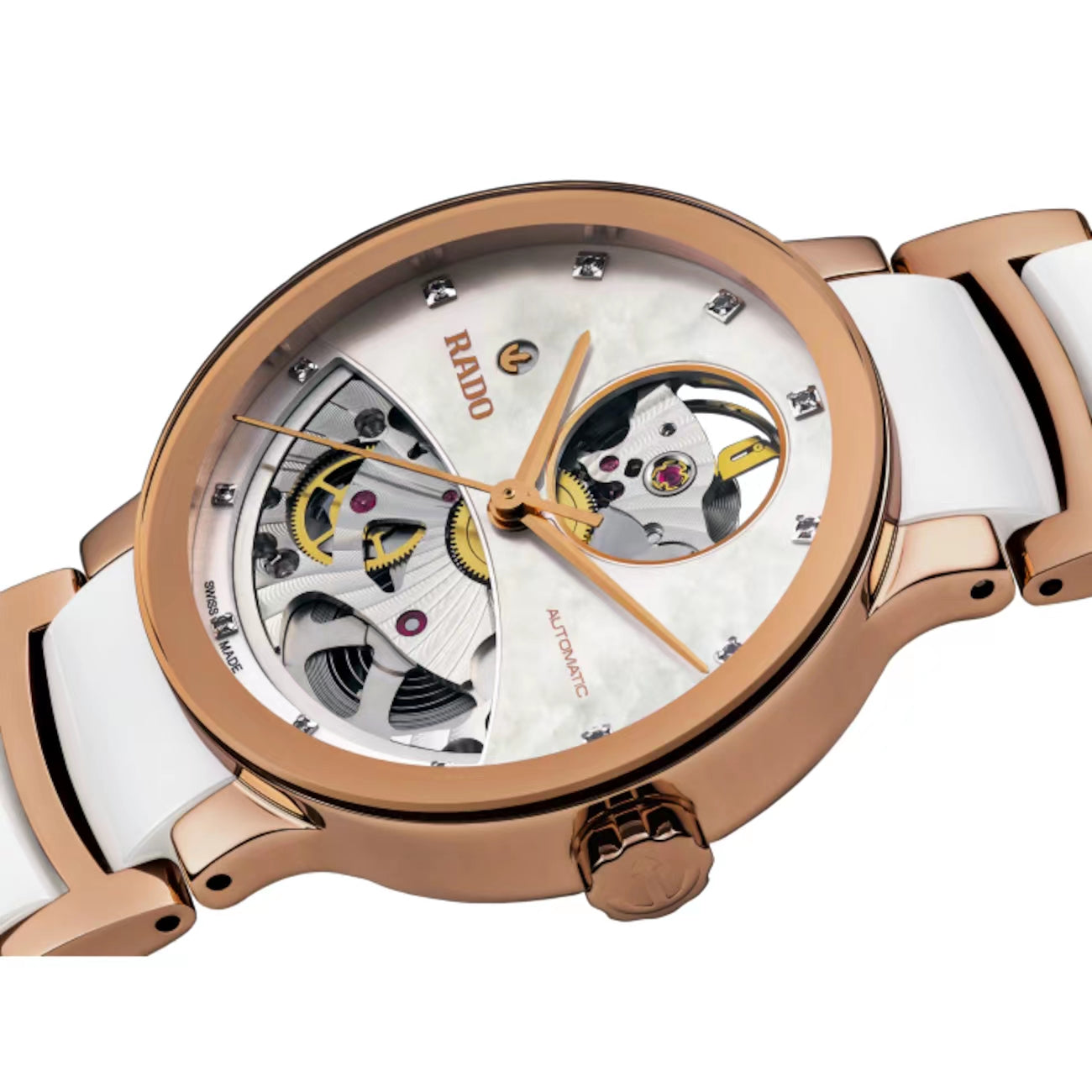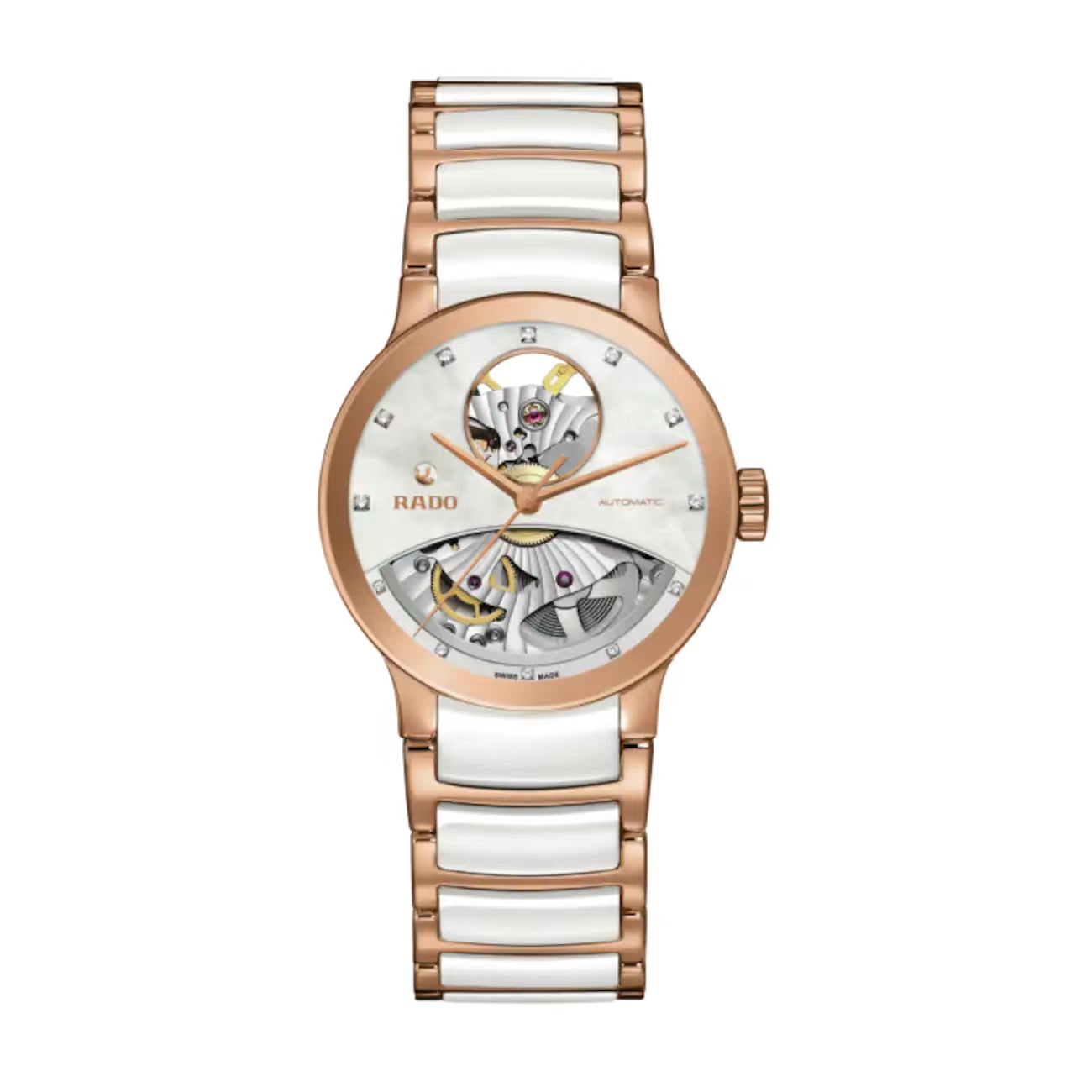 The popular Centrix collection proves it’s what’s inside that counts with the Automatic Open Heart Diamonds offering a glimpse of the quality Swiss automatic movement inside and a glamorous sprinkling of diamonds on the cut out dial. With Rado’s signature sapphire crystal adding scratch-resistant shine, these watches are designed to look good for life