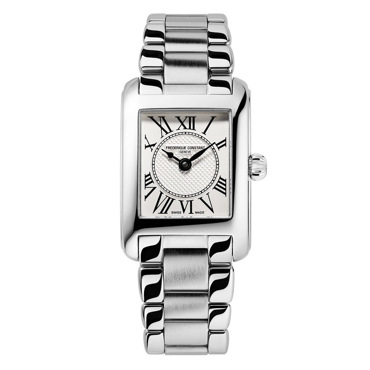 SILVER-COLORED DIAL, GUILLOCHÉ DECORATION, PRINTED ROMAN NUMERALS. HAND-POLISHED BLACK HANDS.