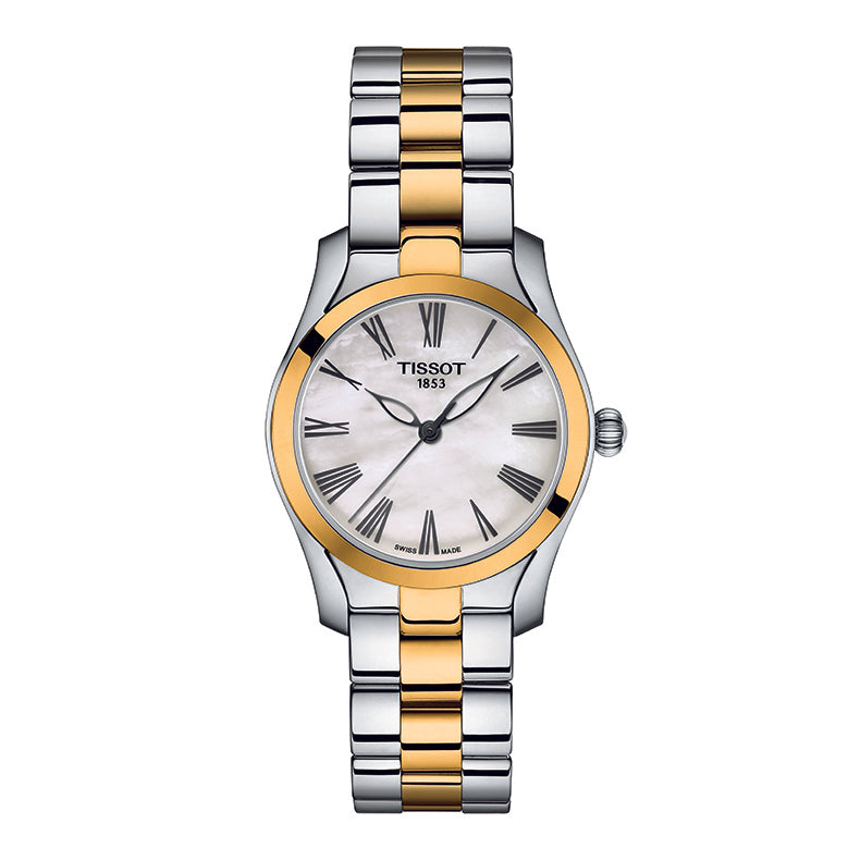 Inspired by the movements of a ribbon, the Tissot T-Wave transports you to its delicate and glamourous universe. The ribbon twists over the watches and reveals subtle details such as harmonious and fluid curves, a mother-of-pearl dial, and diamonds. We created this collection for women looking for a feminine and pure watch that can be worn like jewelry with an elegant evening dress or a classic suit.
