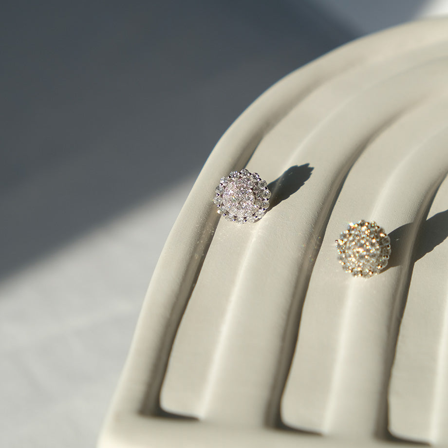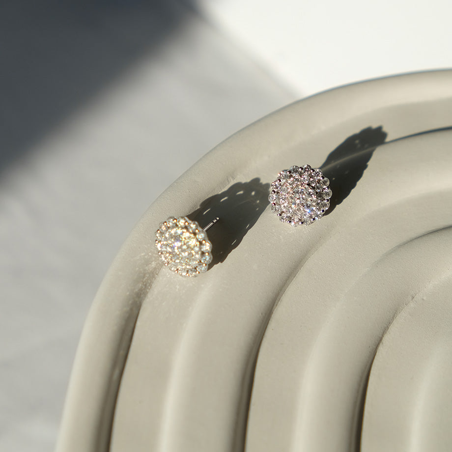 The 14k solid white gold flower studs are easy daily wearings and add the sparkling to your daily life.